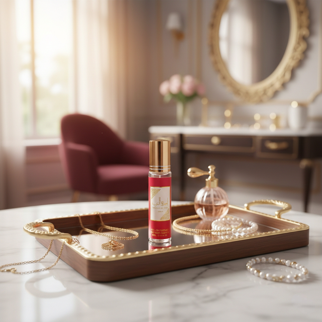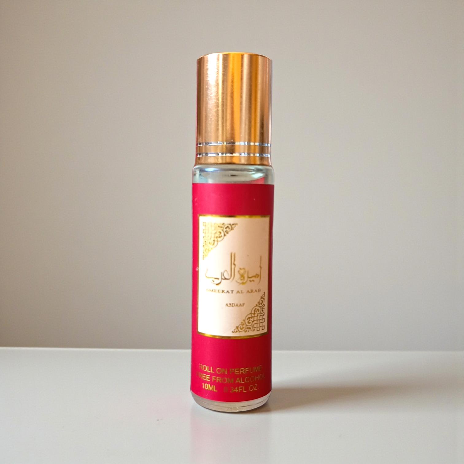 Le Roll-on " Ameerat Al Arab " 10 ml est un parfum sans alcool élégant et raffiné, pensé pour sublimer la peau en toute délicatesse. Son format roll-on pratique permet une application précise et diffuse un sillage féminin, oriental et lumineux.