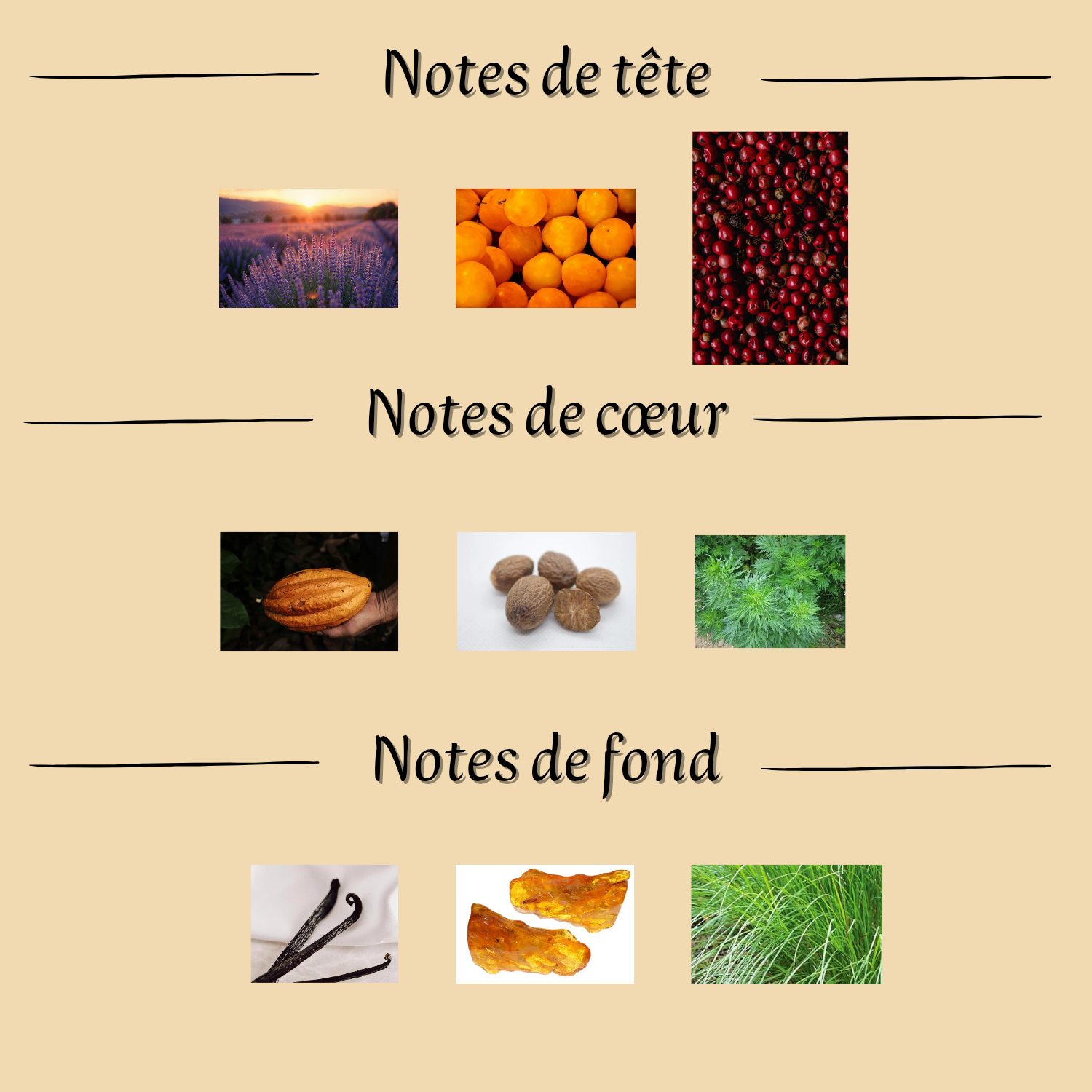 Notes de cœur : Cacao, Noix de muscade, Davana