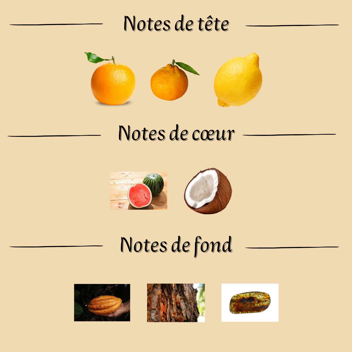 Notes de fond : Cacao, Amberwood, Ambre gris