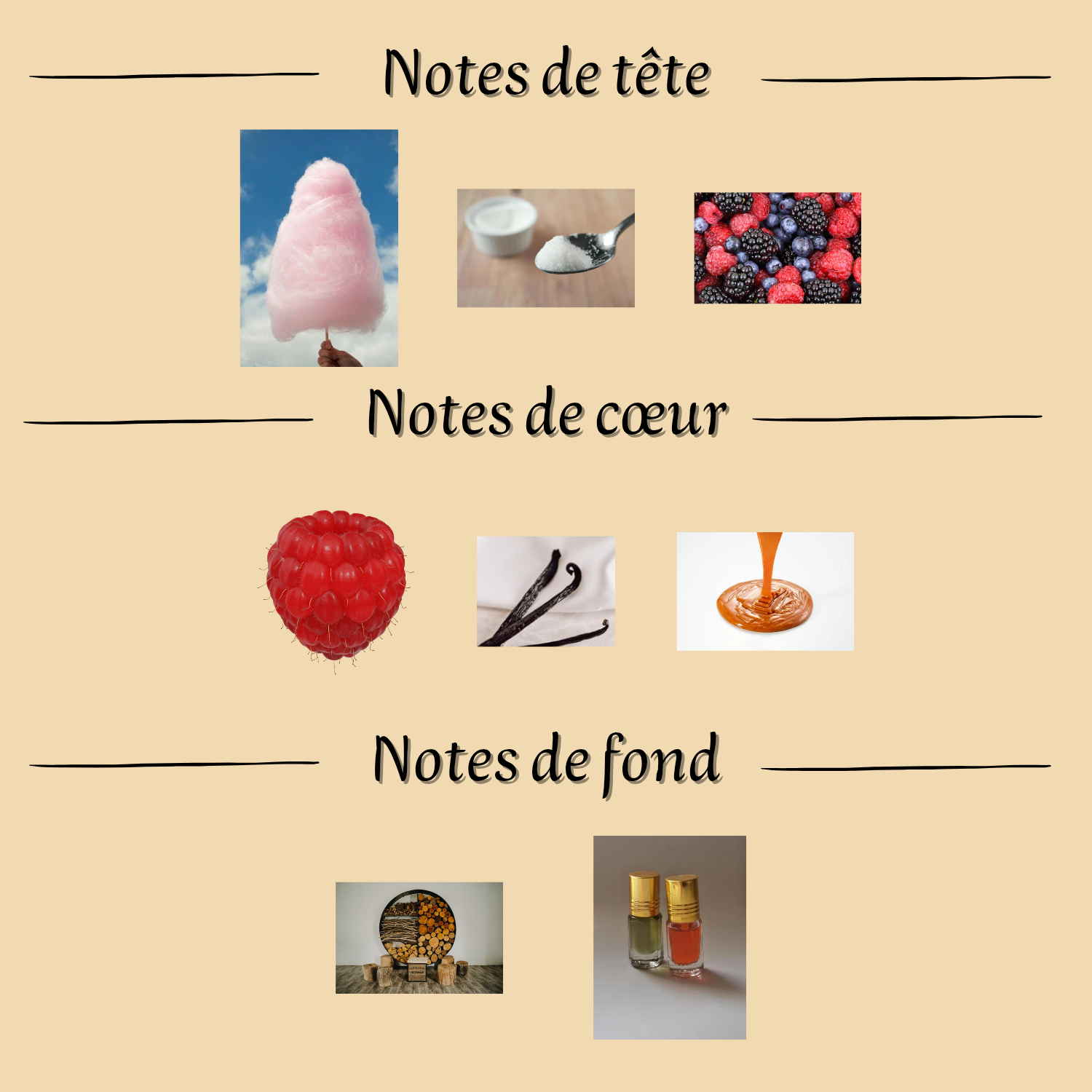 Notes de cœur : Framboise, Vanille, Caramel