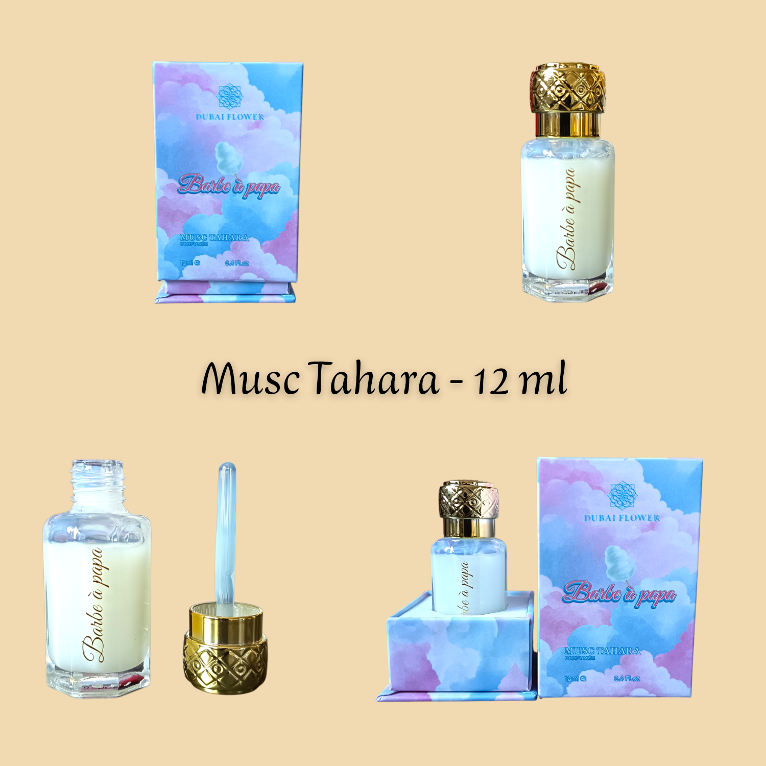 Le Musc Tahara " Barbe à Papa " 12 ml est une fragrance féminine délicieusement gourmande qui évoque la douceur de l’enfance et la tendresse d’un parfum sucré. Délicat et réconfortant, il enveloppe la peau d’un voile propre, tendre et irrésistiblement sucré.
