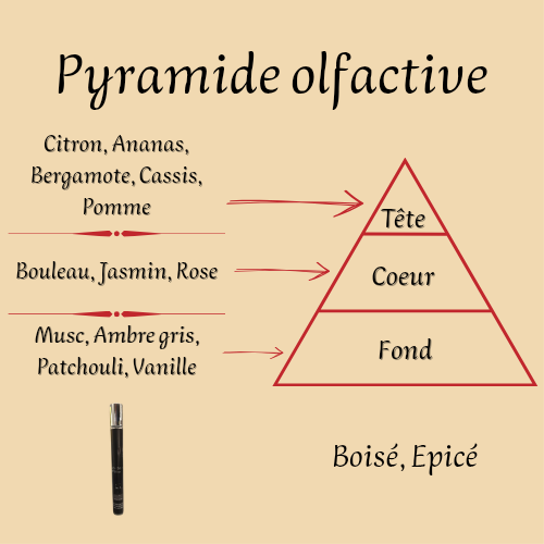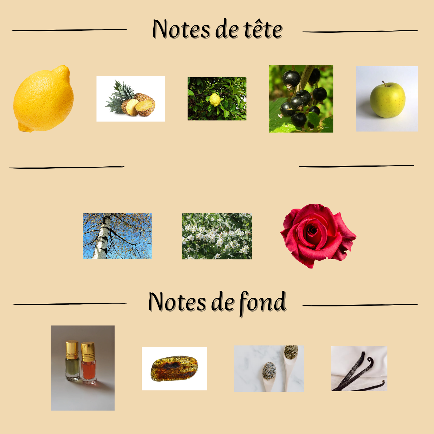 Notes de tête : Citron, Ananas, Bergamote, Cassis, Pomme