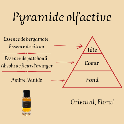 Notes de cœur : Essence de patchouli, Absolu de fleur d'oranger