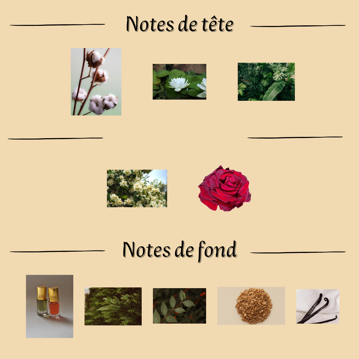 Notes de tête : Fleur de coton, Lotier d'Egypte, Notes vertes