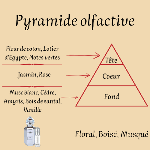 " Musc Tahara " révèle une fragrance fraîche et propre, évoquant la peau nue après le bain. Ses notes blanches et musquées s’enveloppent d’une touche crémeuse et légèrement sucrée, symbole de pureté et de féminité absolue. L’huile intensifie le sillage pour une tenue subtile et raffinée.