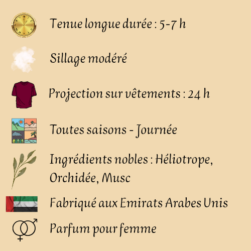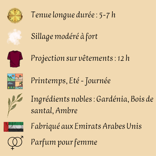Pour une expérience sensorielle optimale, appliquez le parfum sur les points de pulsation tels que le cou, les poignets, la poitrine et derrière les oreilles, permettant ainsi une diffusion subtile et élégante tout au long de la journée.