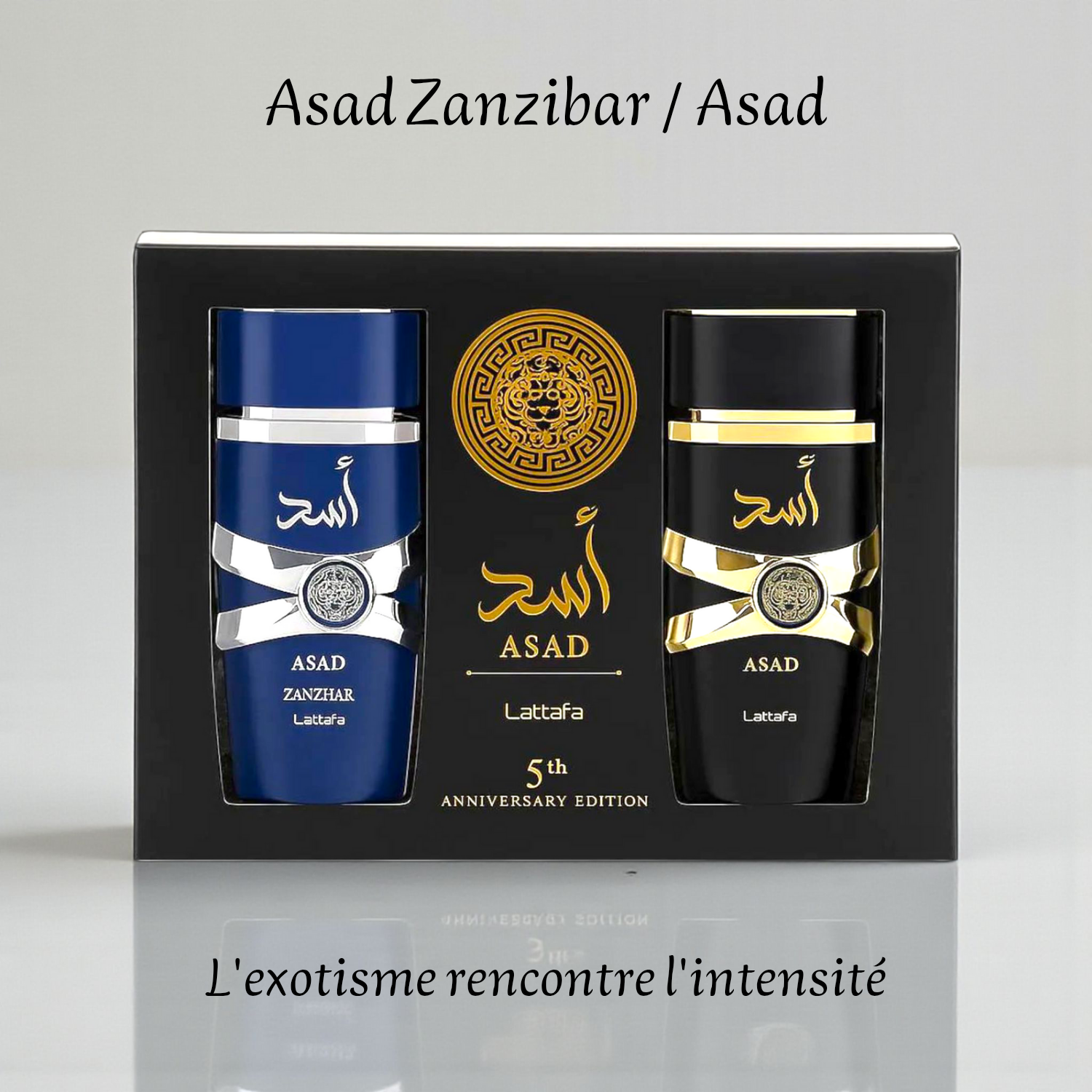 " Asad Zanzibar + Asad " — deux signatures, une seule force.