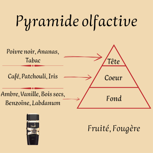 " Asad " séduit par son intensité boisée et ambrée, avec des notes de vanille, ambre et épices chaudes pour un sillage profond et charismatique.
