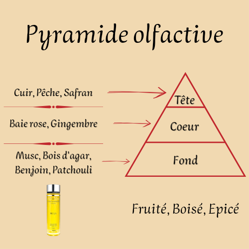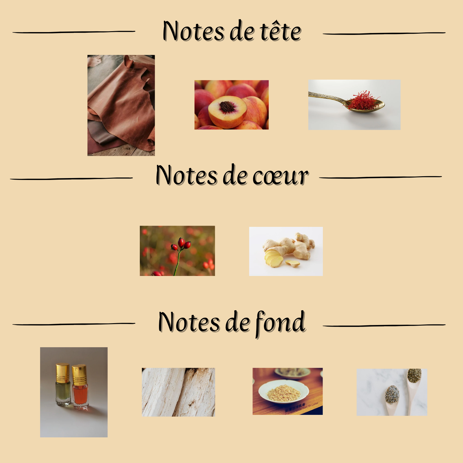 Notes de fond : Musc, Bois d'agar, Benjoin, Patchouli