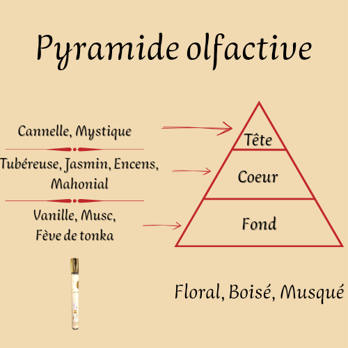 Notes de cœur : Tubéreuse, Jasmin, Encens, Mahonial
