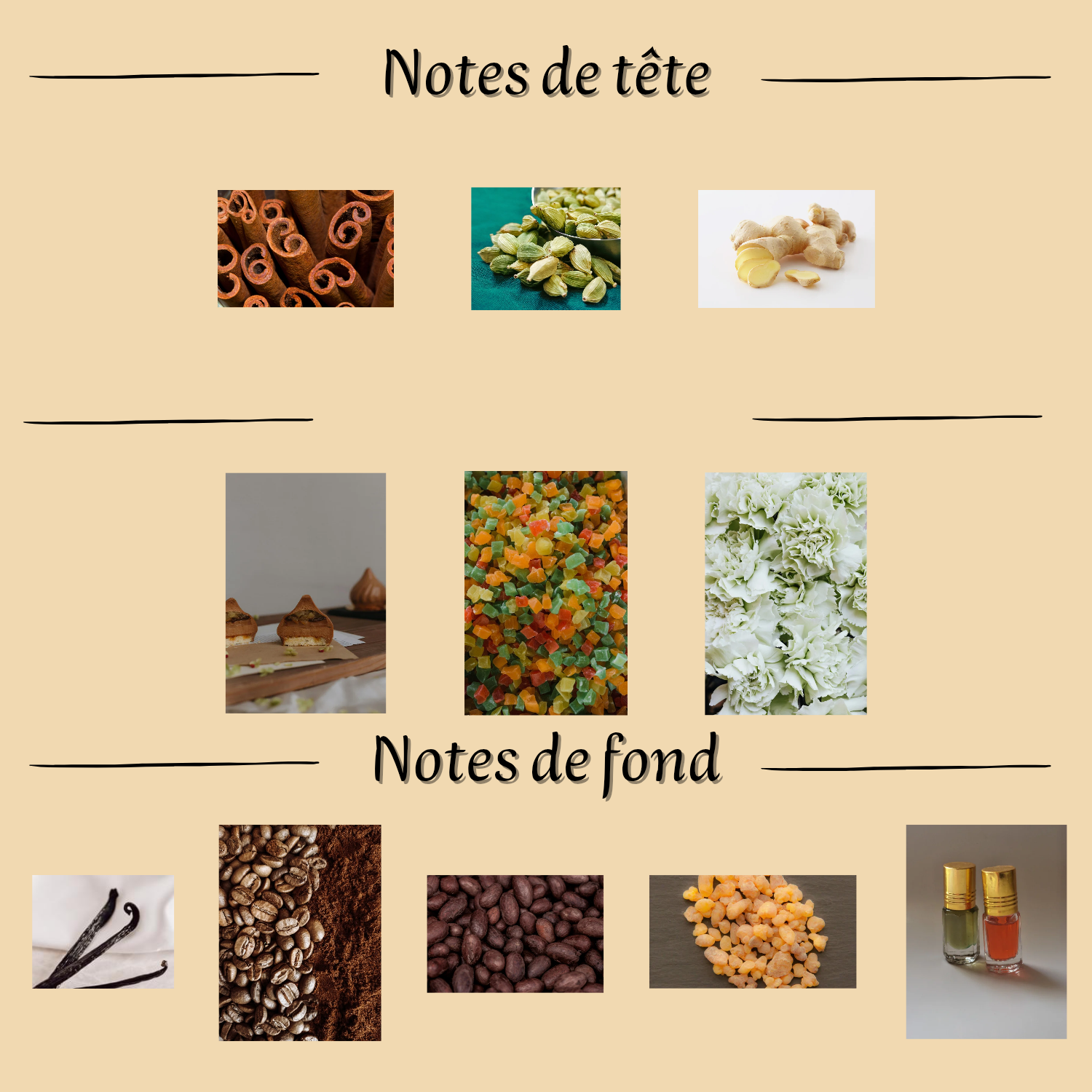 Notes de tête : Cannelle, Cardamome, Gingembre