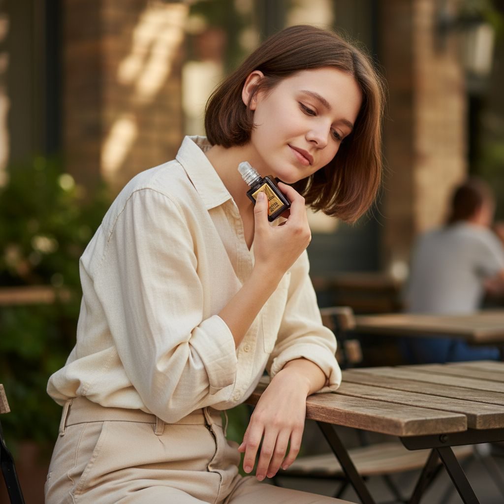 Appliquez le musc roll-on sur les points de pulsation : poignets, cou, derrière les oreilles.