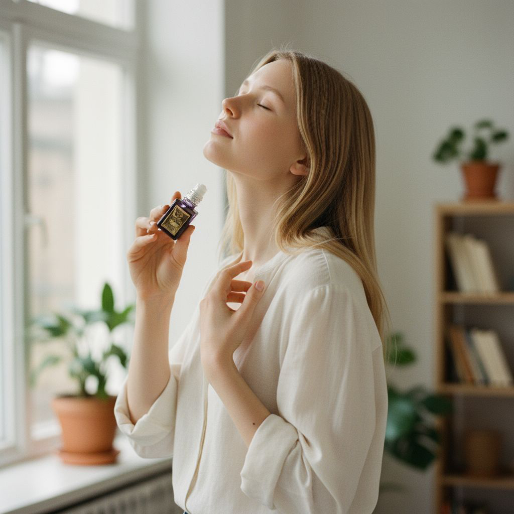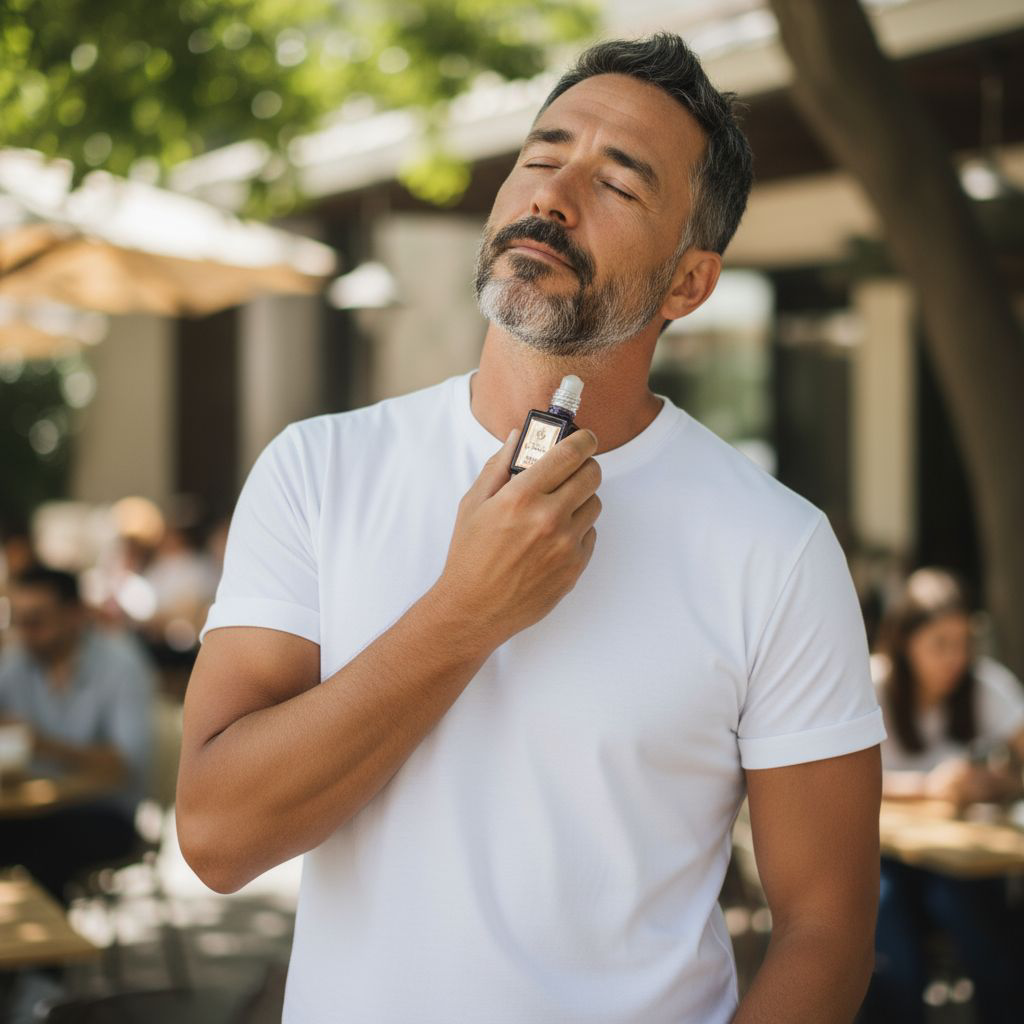 Appliquez le musc roll-on sur les points de pulsation : poignets, cou, derrière les oreilles.