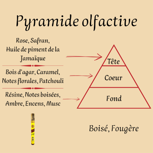 Notes de tête : Rose, Safran, Huile de piment de la Jamaïque