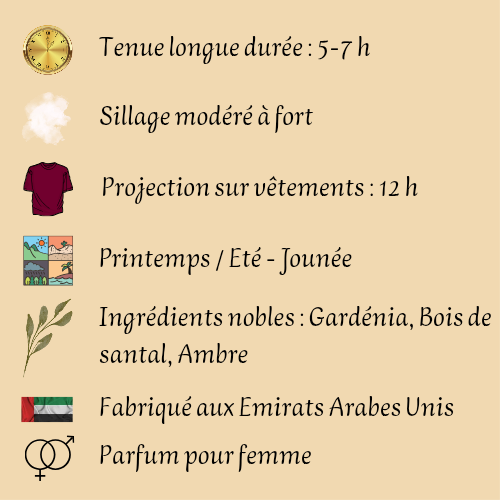 For an optimal sensory experience, apply the fragrance to pulse points such as the neck, wrists, chest and behind the ears, allowing for a subtle and elegant diffusion throughout the day.