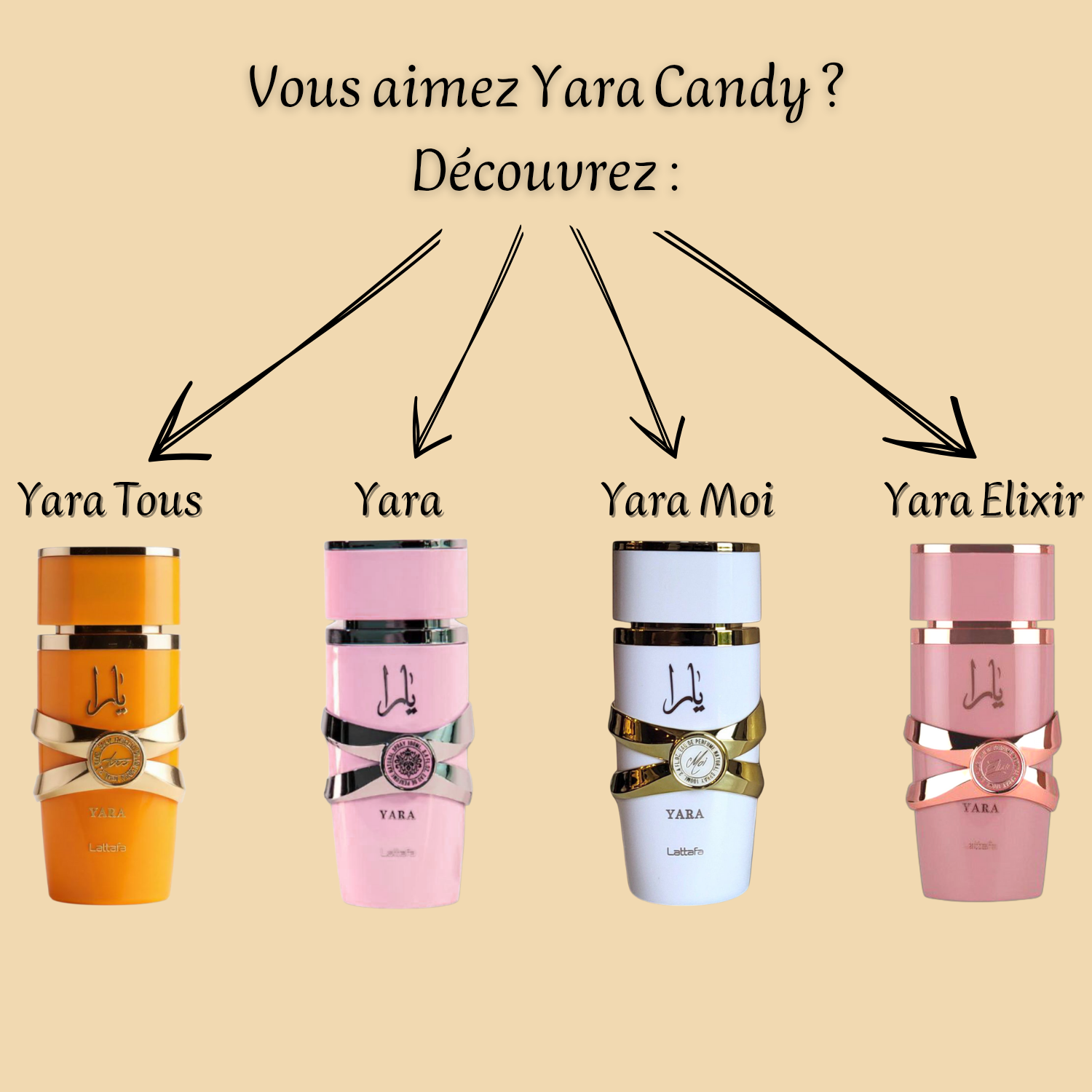 Discover " Yara Candy " by Lattafa, an irresistibly sweet and feminine fragrance that captures the playful and sparkling spirit of a woman full of life. Inspired by the simple pleasures of sweetness and joy, this version of Yara is an explosion of fruity and gourmand notes.