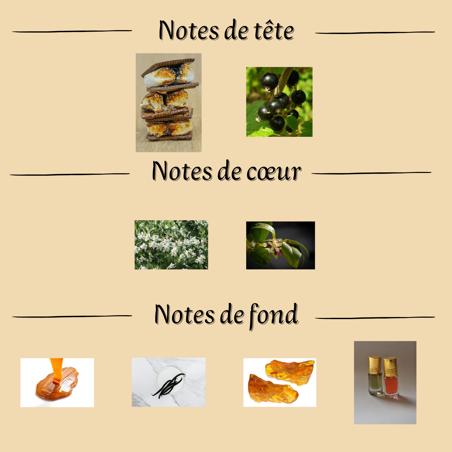 Notes de fond : Caramel, Vanille, Ambre, Musc