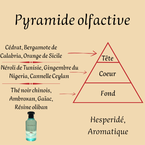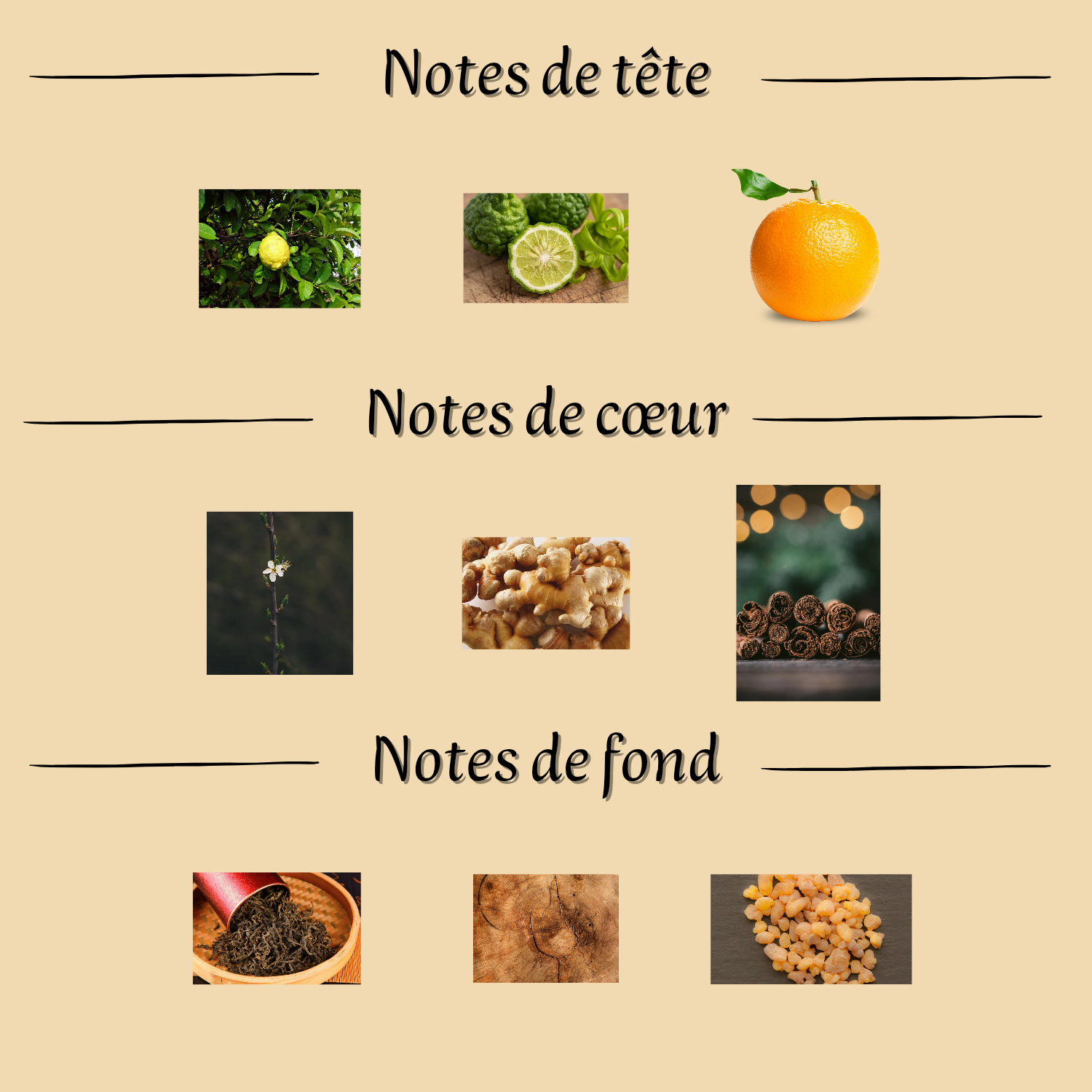 Notes de cœur : Néroli de Tunisie, Gingembre du Nigeria, Cannelle Ceylan