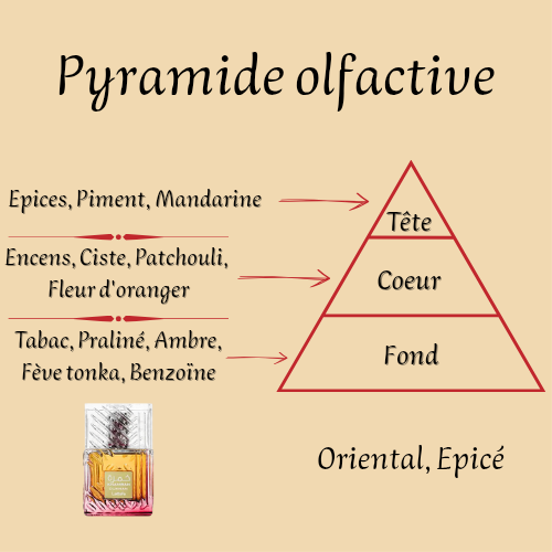 Notes de fond : Tabac, Praliné, Ambre, Fèves de tonka, Benzoïne