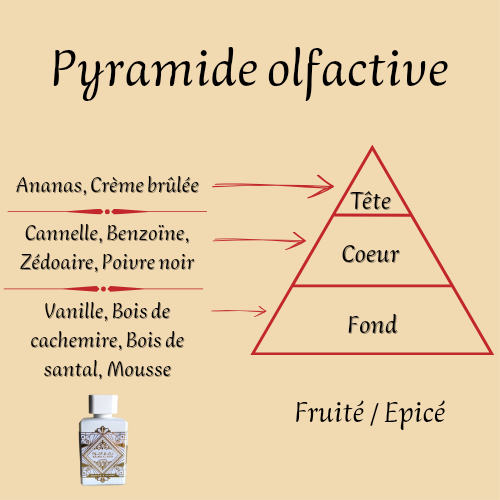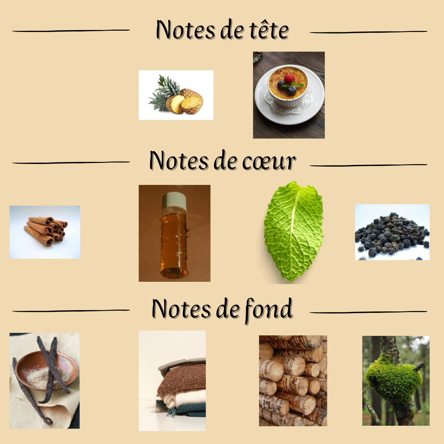 From the opening notes, a vibrant soufflé of spicy ginger and exotic fruits captures the attention. The heart reveals a sumptuous accord of warm vanilla, cinnamon, and amber, offering a sensual sweetness, offset by a deep base of oud wood, tonka bean, and musk. The ensemble creates a perfect balance between woody intensity and spicy indulgence.