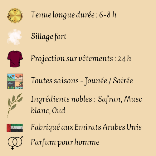 Ses notes boisées et oudées s’entrelacent à un sucre vanillé chaud et enveloppant, créant un sillage intense, sophistiqué et irrésistiblement masculin. Un parfum de caractère, pour l’homme moderne en quête d’authenticité et de raffinement.