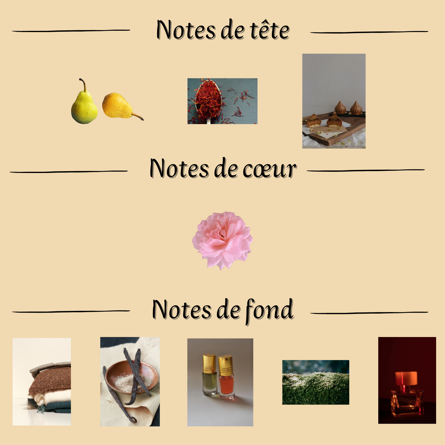 Notes de fond : Bois de Cachemire, Sucre vanillé, Musc blanc, Mousse de chêne, Oud