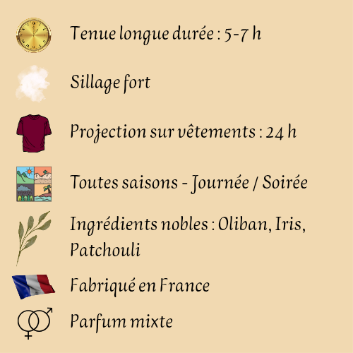Pour une expérience sensorielle optimale, appliquez le parfum sur les points de pulsation tels que le cou, les poignets, la poitrine et derrière les oreilles, permettant ainsi une diffusion subtile et élégante tout au long de la journée.