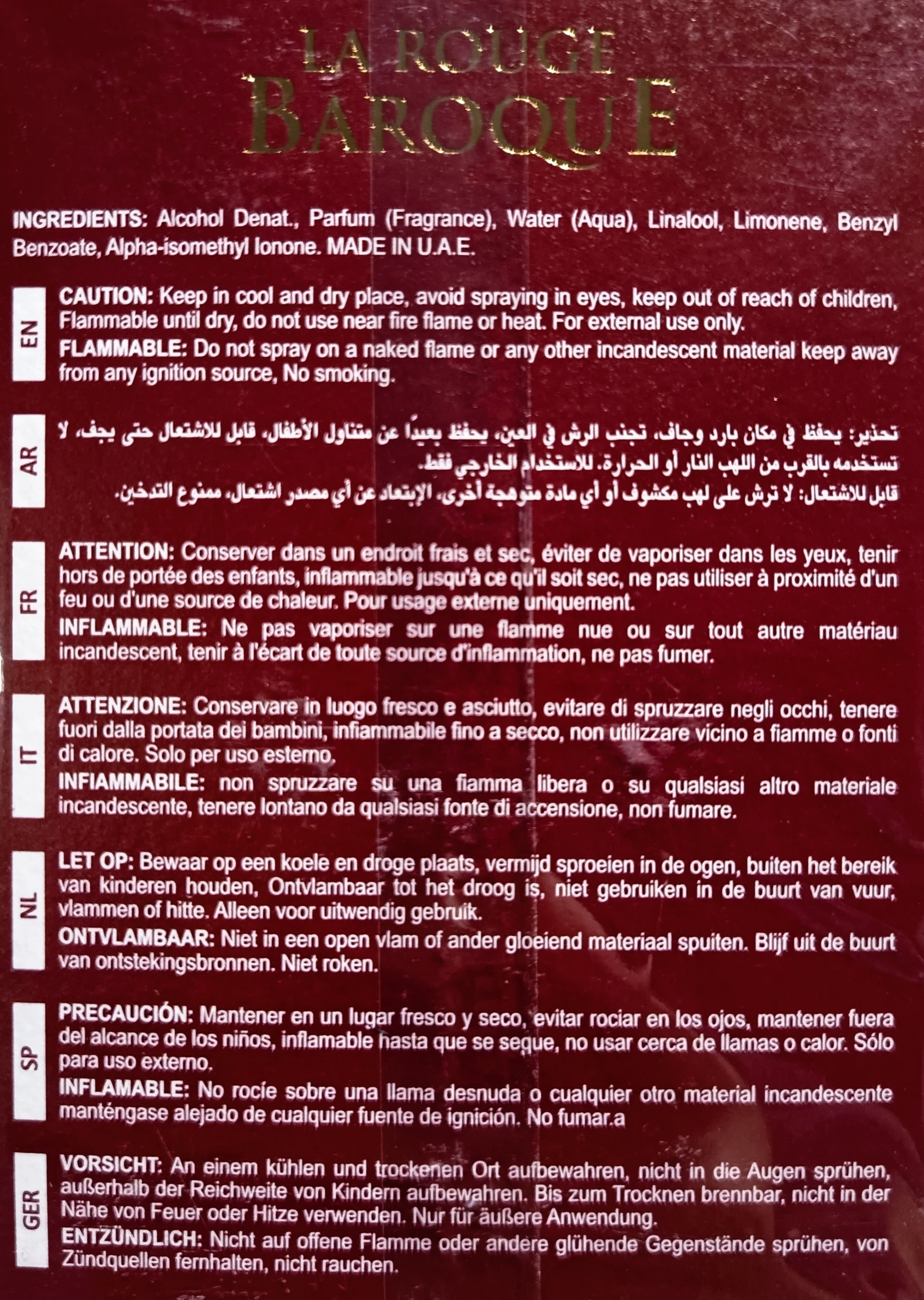 With its rich and opulent composition, " La Rouge Baroque Extreme " is aimed at lovers of perfumes with character, elegant and refined, suitable for both men and women.