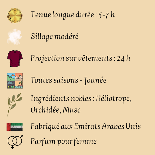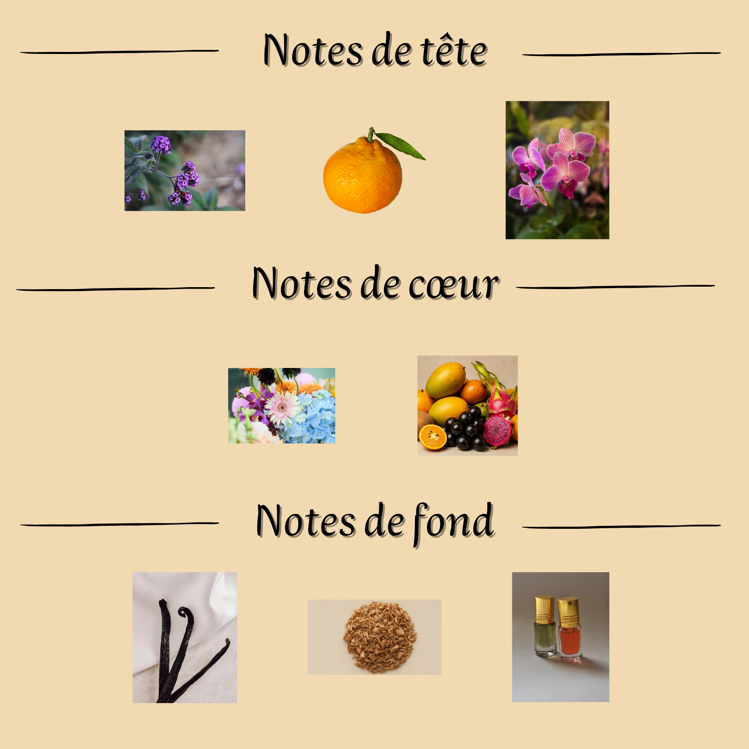 Notes de tête : Héliotrope, Mandarine, Orchidée