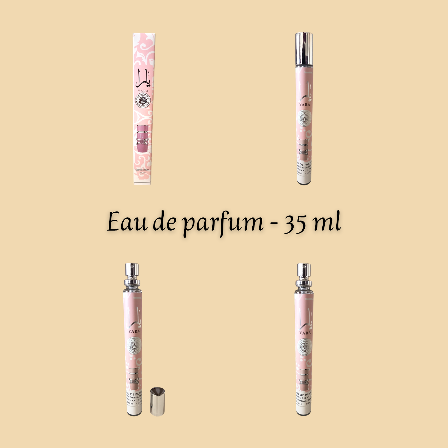 Grâce à son format compact 35 ml, " Yara " vous accompagne partout et vous permet de raviver votre sillage à tout moment.