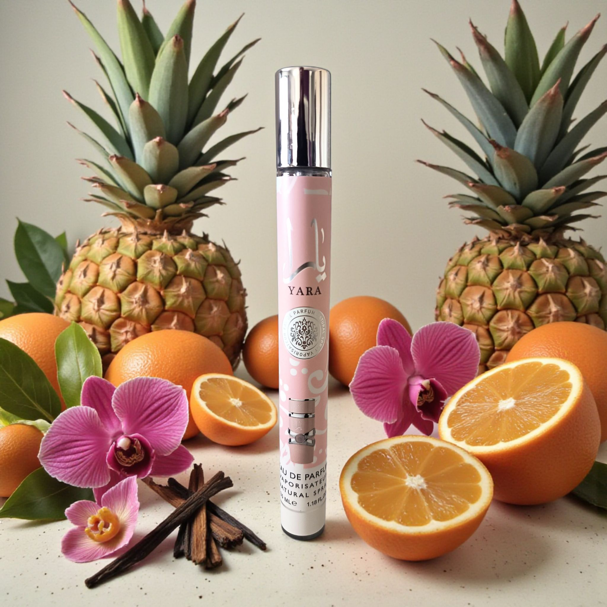 " Yara " 35 ml est une eau de parfum féminine douce, gourmande et irrésistiblement addictive. En format de poche, cette fragrance iconique dévoile un mélange enveloppant de notes fruitées, crémeuses et florales qui laisse un sillage tendre et séduisant.