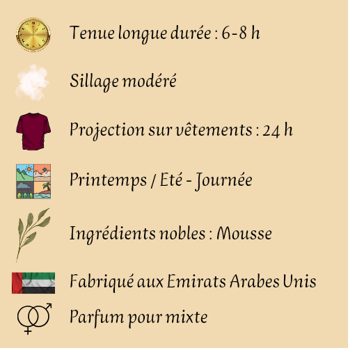 Pour une expérience sensorielle optimale, appliquez le parfum sur les points de pulsation tels que le cou, les poignets, la poitrine et derrière les oreilles, permettant ainsi une diffusion subtile et élégante tout au long de la journée.